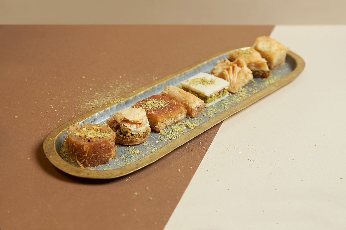 Baklawas 9 pièces 14.40€ Baklawas 9 pièces Pâtisseries dorées à l’amande, pistache & pignon de pin Baklavas 9 pieces Golden pastry with almond, pistachio and pine nuts بقلاوة 9 حبه << Category: snack-dessertsmaison