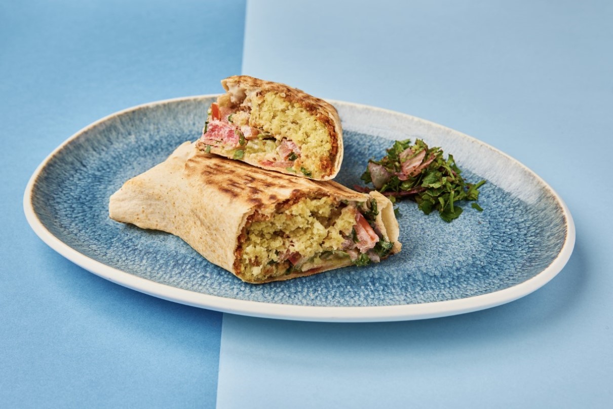 Crunchy beans, chickpeas, spices and sesame cream, onion, parsley, tomato, cucumber pickles