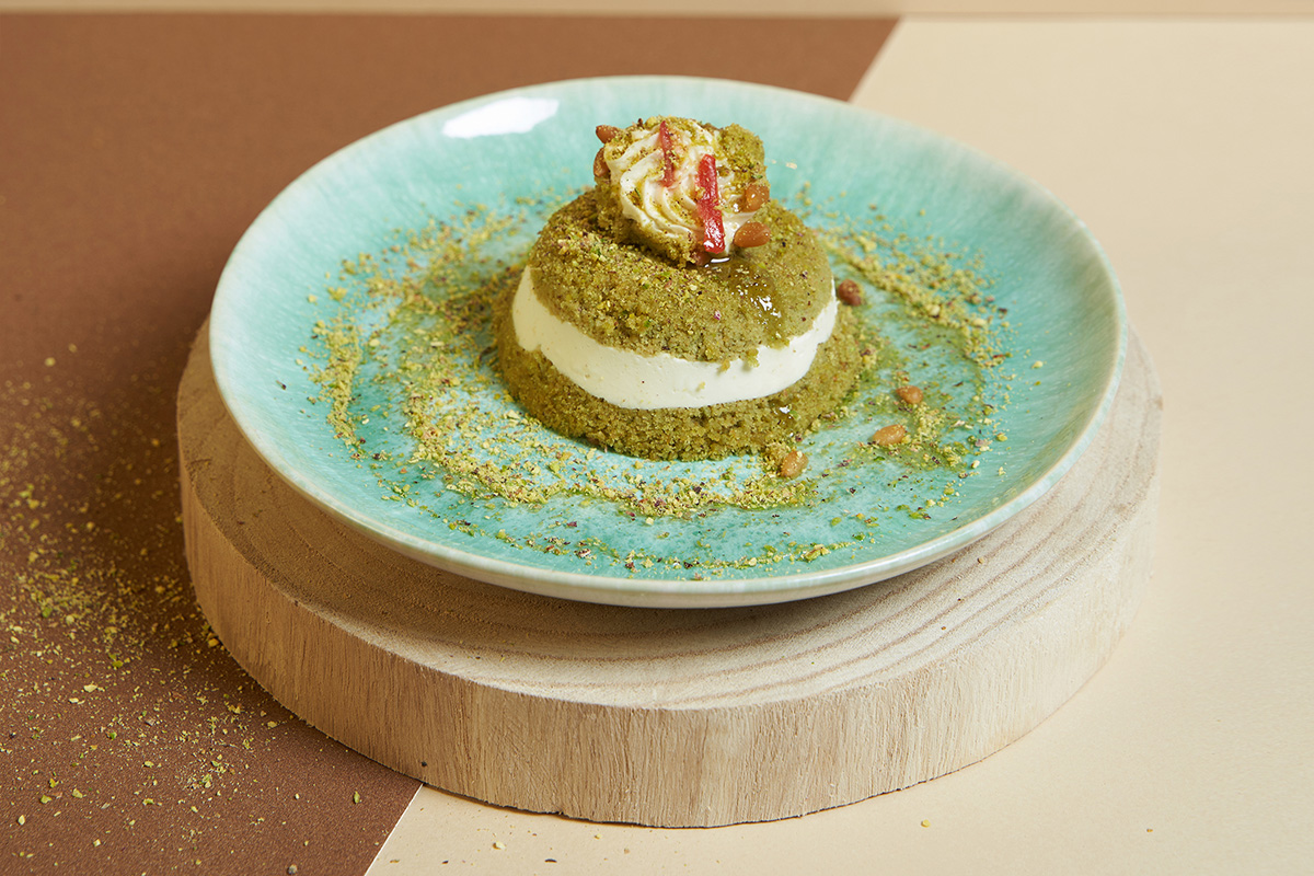 Mafrouké 5.90€ Mafrouké Cheveux d’ange moulus à la crème de lait, pistache & sirop de fleur d’oranger Mafroukeh Angel hair ground with milk cream, pistachio & orange blossom syrup مفروكة Category: snack-dessertsmaison