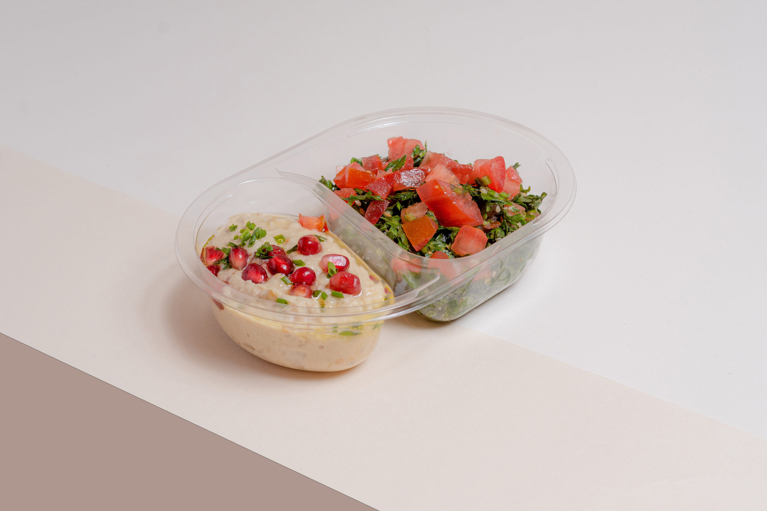 كافيار الباذنجان، كريمة السمسم، عصير الليمون، زيت الزيتون