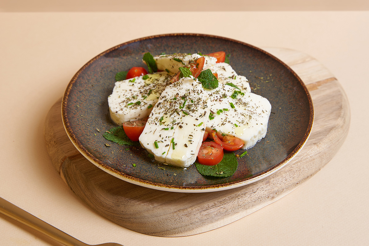 Halloumi Grillé 12.00€ HALLOUMI GRILLÉ Fromage de lait de vache au zaatar, huile d’olive GRILLED HALLOUM Zaatar cow’s milk cheese, olive oil حلومي مشوي << Category: Mezzés chauds