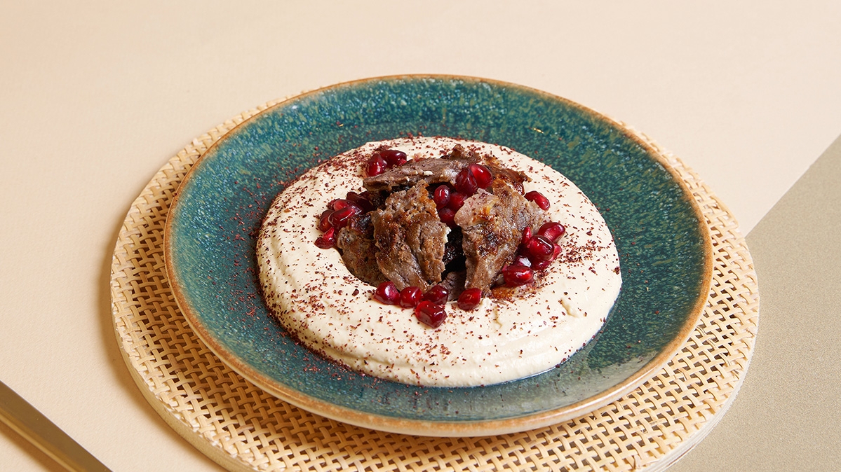 Hommos « Chawarma » 12.00€ HOMMOS « CHAWARMA » Purée de pois chiches, bœuf et agneau finement tranchés aux épices HUMMUS « SHAWARMA » Chickpea puree, thinly sliced beef and lamb with spices حمص شاورما Category: Mezzés chauds