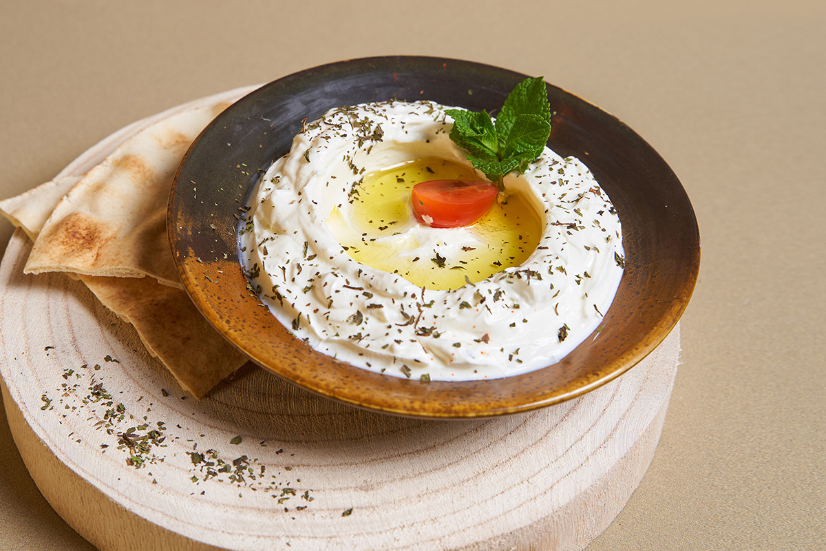 Labné au Zaatar 9.00€ LABNÉ AU ZAATAR Fromage blanc au lait de vache, huile d’olive THYME LABNEH Cottage cheese with cow’s milk, olive oil لبن ة << Category: Mezzés froids