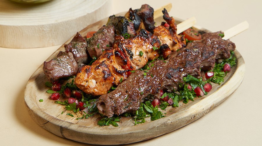Agneau, kafta & taouk, sauce tarator, crème d’ail